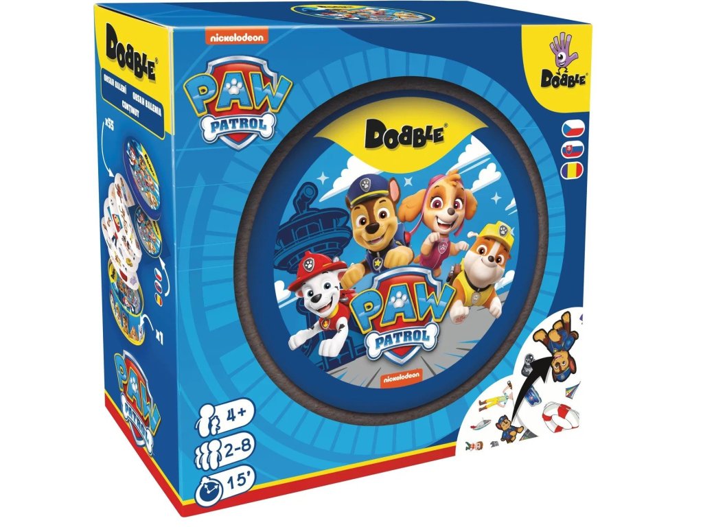 Dobble Paw Patrol je dětská verze nejoblíbenější postřehové hry Dobble – tentokrát s postavami ze seriálu Paw Patrol. Nabízí naprosto unikátní zábavu. Hráči v ní hledají dva stejné symboly na kartách u různých verzí hry. Super jsou kulaté karty i jednoduchá pravidla, vysvětlená doslova za pár vteřin. Hra je vhodná pro 2-8 hráčů.