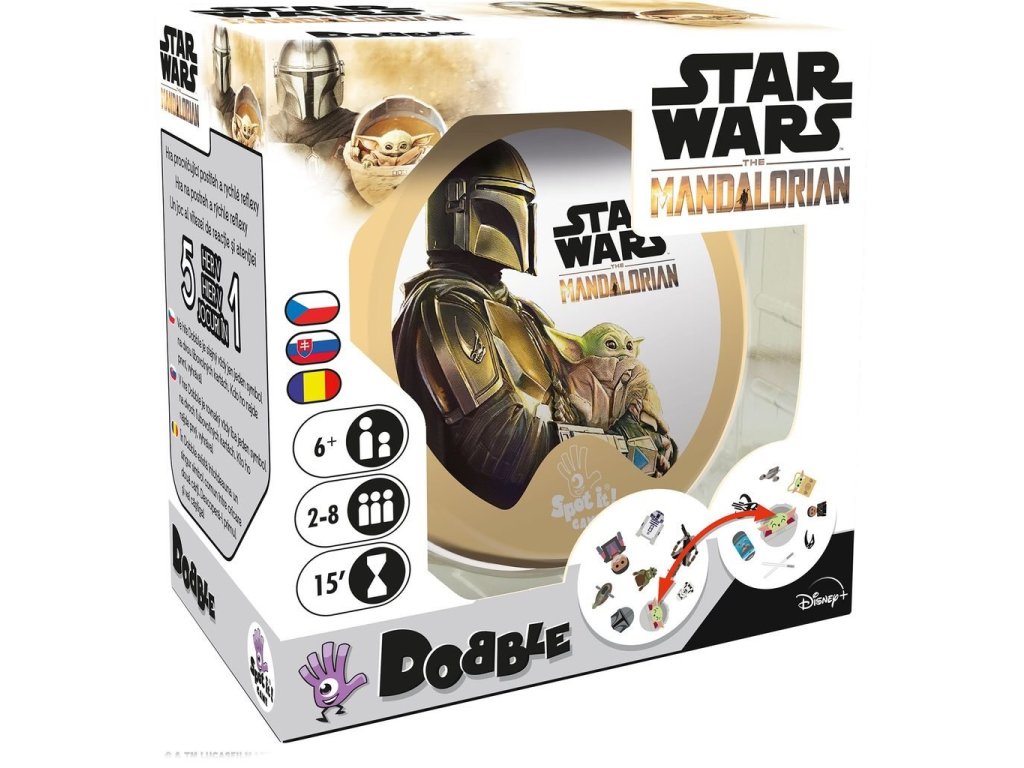 Oblíbená postřehová hra Dobble přichází v nové verzi, tentokrát potěší fanoušky Star Wars. Klasická verze s novými obrázky ze světa těchto Hvězdných válek. Plechová krabička obsahuje 55 kruhových karet. Na každé kartě je osm odlišných a různě velkých obrázků. Každé dvě karty mají právě jeden z obrázků stejný. Základním principem hry Dobble je co nejrychleji tento obrázek najít. Vyzkoušet můžete postupně pět variant hry. Hra pro 2–8 hráčů.