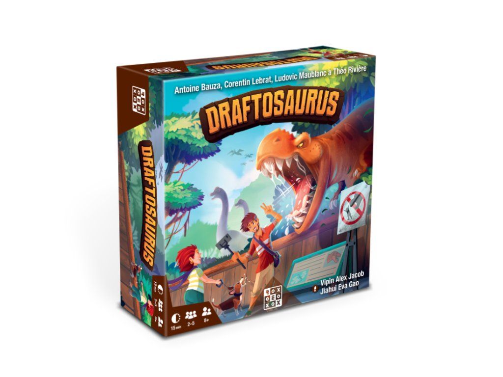 Ve hře Draftosaurus hráči vybírají dinosaury z pytlíku a umisťují je do svých zoo. Jeden z hráčů hodí kostkou, která určí omezení pro ostatní; tento mechanismus kombinuje výběr dinosaurů s hadem kostkou jako omezením, takže každý tah vyžaduje rychlé plánování.